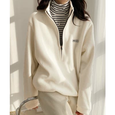 柔らかい起毛フリース仕上げのハーフジッププルオーバー。