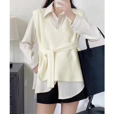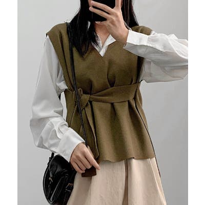 ベルト付きニットベストニットジレVネック