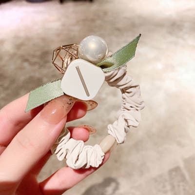 チャームアクセサリーがたくさん付いたかわいいヘアゴム