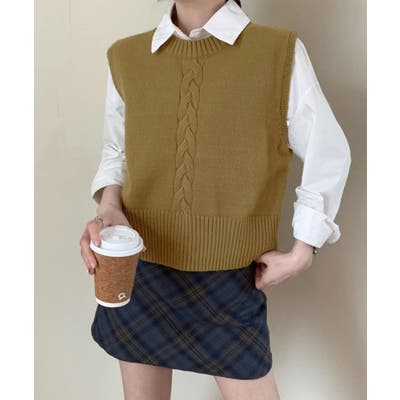 クラシカルな雰囲気漂うケーブル編みのニットベスト。