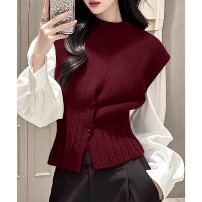 リブ切り替えとフロントボタンがアクセントになった上品なニットベスト。