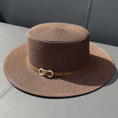 シーズンライクな素材に細めのレザーベルトを加え、女性らしさとスタイリッシュさが際立つカンカン帽