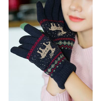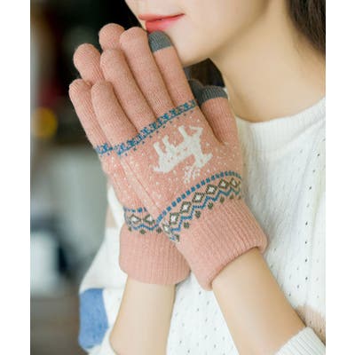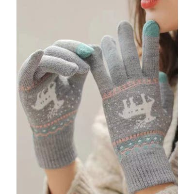 トナカイ柄のノルディックデザインが可愛い、裏起毛仕様のタッチパネル対応5本指ニット手袋。
