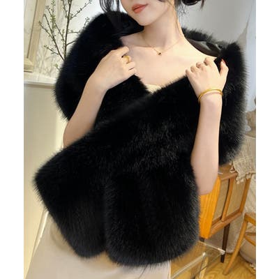 秋冬コーデに華を添えるフェイクファーケープショール。