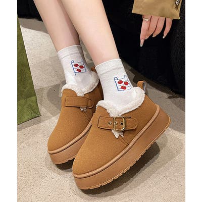 厚底ムートンブーツ 裏起毛ショートブーツ