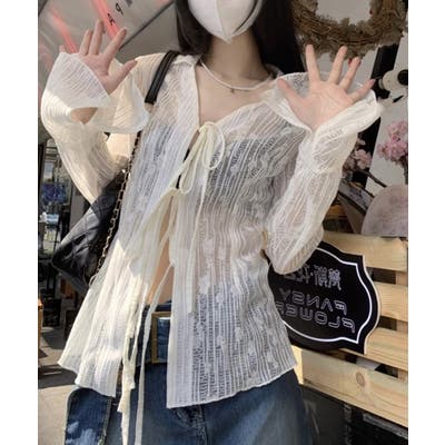 レディース シアーシャツ 肌見せ 透け感 春夏トップス へそ出し UVケア 重ね着 カジュアル レイヤードコーデ リボン
