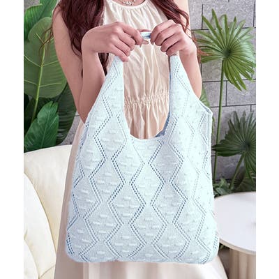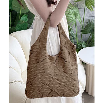 ナチュラルな編み柄がコーデにこなれ感をプラスするニットトートバッグ。