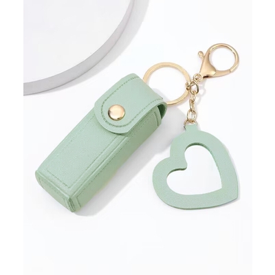 リップホルダー PUレザー リップ収納 キーホルダー 可愛い 鍵アクセサリー 韓国風 ハート型ミラー 雑貨 小さいケース