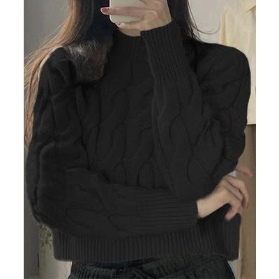 ケーブルニット ラウンドネック プルオーバー カジュアル 長袖 韓国風 ニットソー 大人可愛い ニットセーター 秋冬