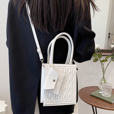 スクエアバッグ おしゃれ ミニトートバッグ 縦型 ファスナー付き オルチャン肩掛けバッグ お出かけ斜めがけ ハンドバッグ
