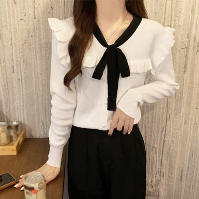 ボウタイニットトップス レディース 大人