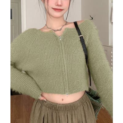 ダブルジップ シャギーニット ショート丈
