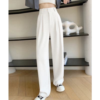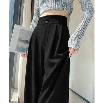ツータック入りのハイウエストワイドスラックス。