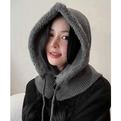 暖かいフードウォーマー ボア防寒帽子耳当て付き 韓国風小顔帽子 可愛いペアルック帽子 防風ニットキャップ フードマフラー