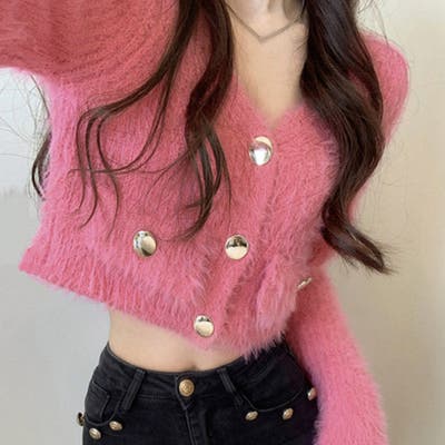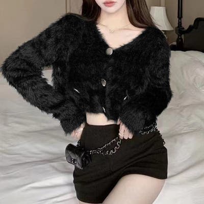 毛足の長いフェザーヤーンがふわふわしてて、見た目・着心地ともにフェミニンなムードたっぷり!