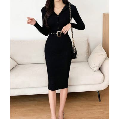 膝丈ニットワンピース 細見えセクシーワンピ スリムフィット ハイウエストロングワンピ 韓国風 おしゃれニットドレス 秋冬