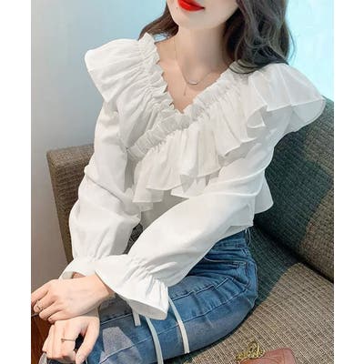 ボリュームのあるフリルが魅力のフェミニンブラウス