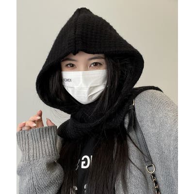 フード付きニットマフラー韓国風バラクラバ