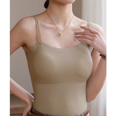 レディース ダブルストラップ シームレスキャミ ノンワイヤー ベーシック肌着 大人可愛い 薄手インナーウェア カジュアル