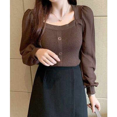 韓国風 ブラウス 長袖 ニットトップ 大人可愛い シャツ