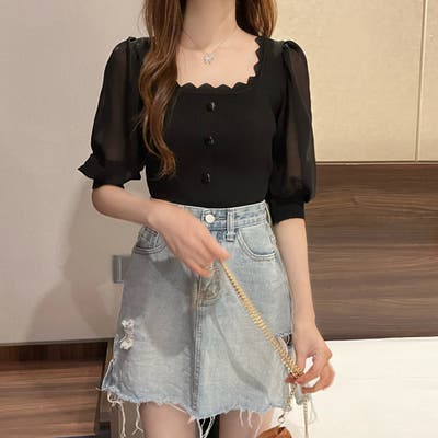 カジュアルなデニムパンツからフェミニンなシフォンスカートまで、幅広いボトムにマッチする着回し力抜群のアイテム