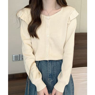 ニットカーディガン ショルダーフリル