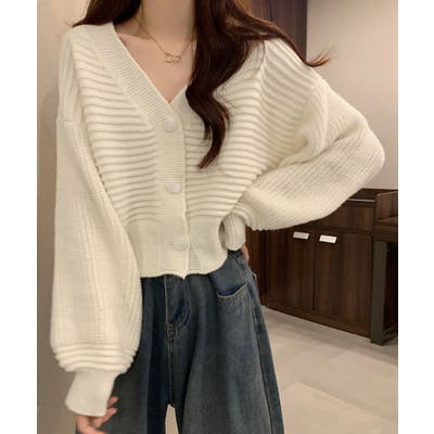 大きめボタンと立体的なリブ編みデザインで、こなれ感を演出。