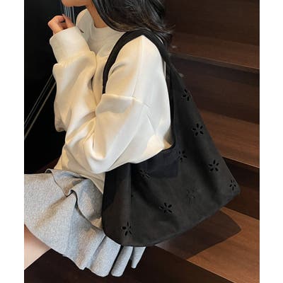 スエード調素材にフラワーカットを施した、存在感抜群のトートバッグ。