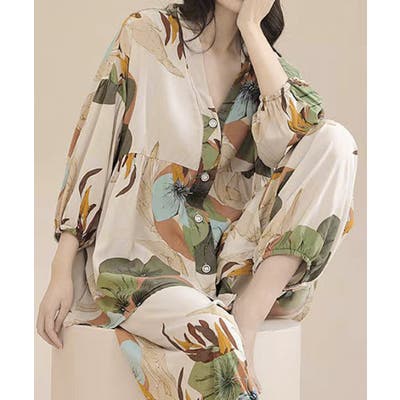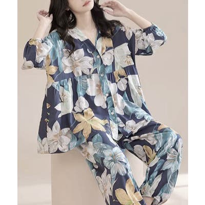 上下2点セット 大人可愛い部屋着 韓国風 柔らかく軽い ナイトウェア 涼し気 薄手 寝巻き 七分袖 快適 ラウンジウェア