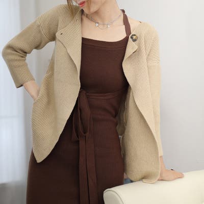 ちくちくせずに肌触りが滑らかなリブ編みニット生地を使用、シンプルに着るだけでヌケ感とキッチリ感をバランス良く演出する7分袖カーディガン