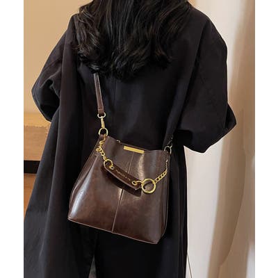 ヴィンテージ感漂う韓国風デザインのチェーン付きバケットバッグ。