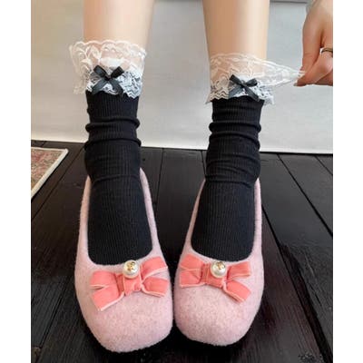 足元を華やかに見せる、フリルレースをあしらったリボンソックス。