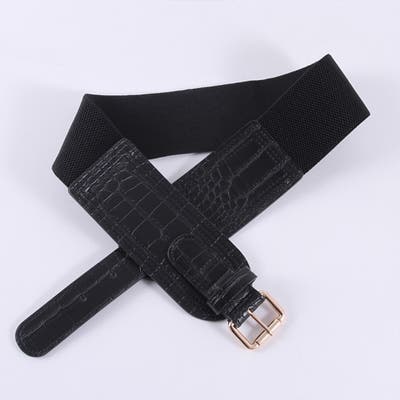 幅広ベルト 後ろゴム ボリューム お洒落 クロコ型押し 2タイプ シンプル サッシュベルト オールシーズン 楽ちん
