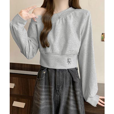 オフショルダーでヘルシーな肌見せが魅力のライトスウェットトップス