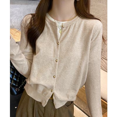上品な印象のゴールドボタンがポイントのベーシックカーディガン。