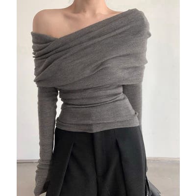 ワイドオフショルダーニットトップス肩出し