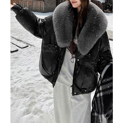エコダウンジャケットファー襟中綿アウター