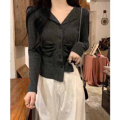 オープンカラーフロントギャザートップス