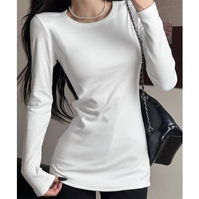 インナーとしても一枚でも活躍する万能デザインで、秋冬のレイヤードスタイルに欠かせない一枚。