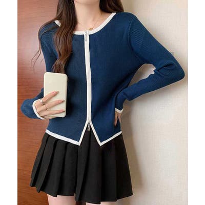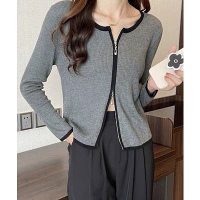 ダブルジップ 長袖ニットカーディガン