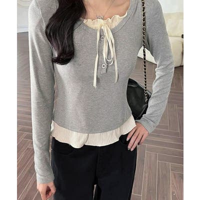 まるで重ね着しているように見えるフェイクレイヤードデザインが特徴の長袖トップスです。