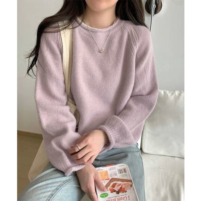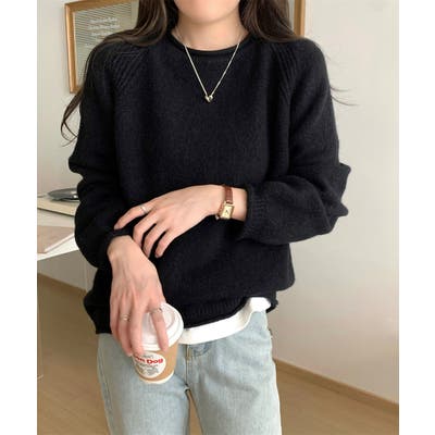 シンプルながら、ラグランスリーブの編み地ディテールがさりげないアクセントに。