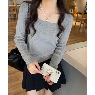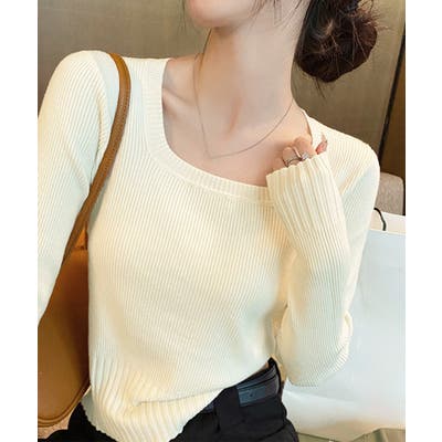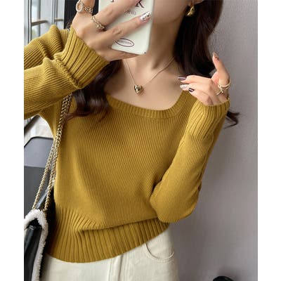 ニットトップス スクエアネック 春秋冬