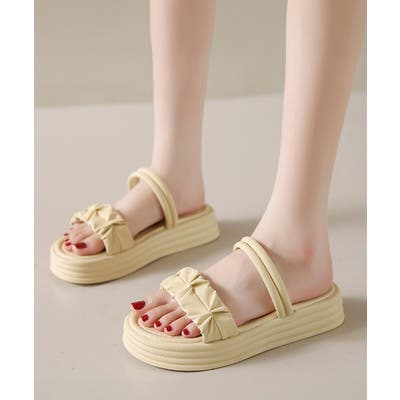 ギャザーデザインのベルトがポイントのサマーミュールサンダル。
