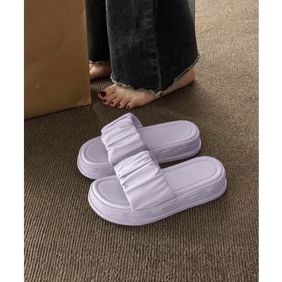 スタイルに合わせやすいブラック、アイボリー、クリームとラベンダー、ベーシックなカラー展開の厚底サンダル。