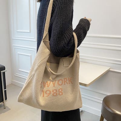 おしゃれ ロゴ 編みバッグ 軽量 シンプル 肩掛けカバン 大容量 可愛い 手提げかばん オルチャン