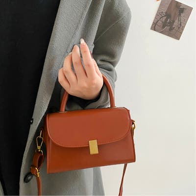 レトロショルダーバッグPUレザー2way オフィスカジュアル