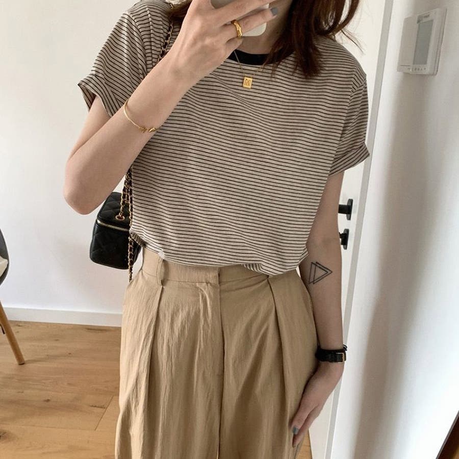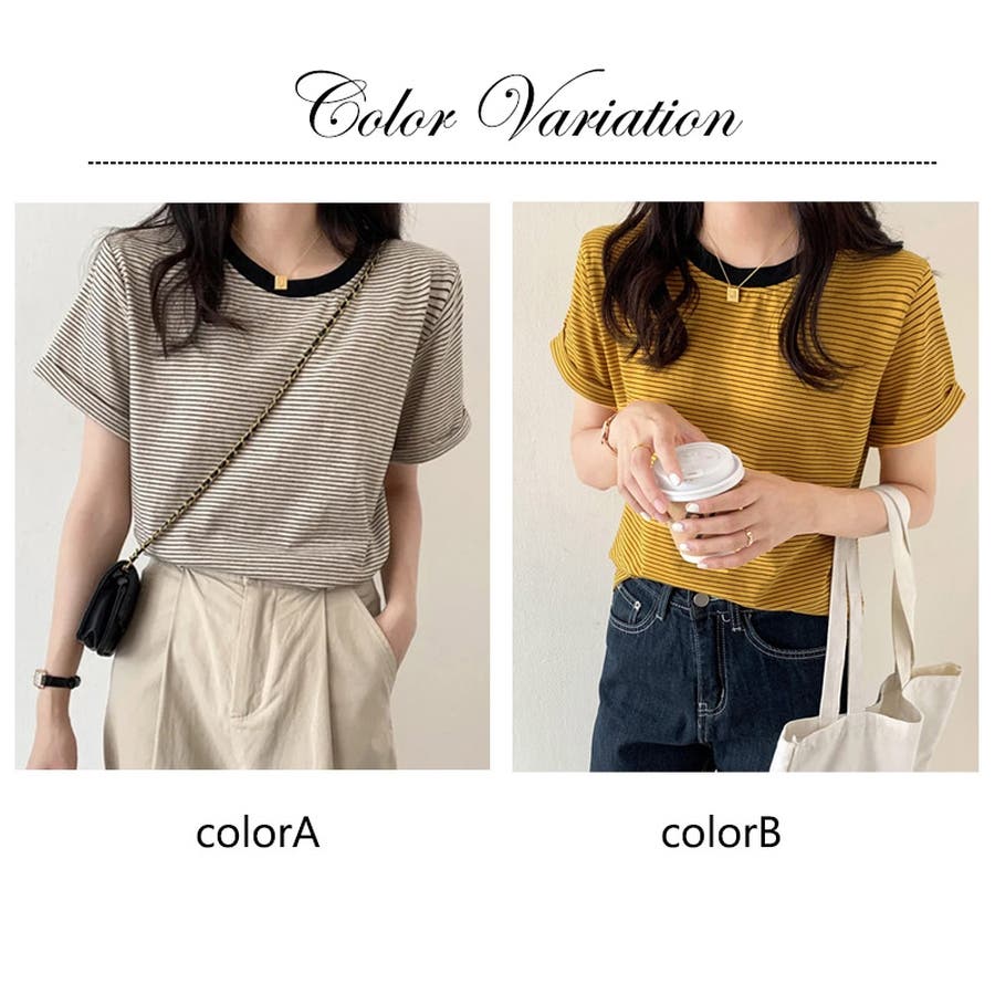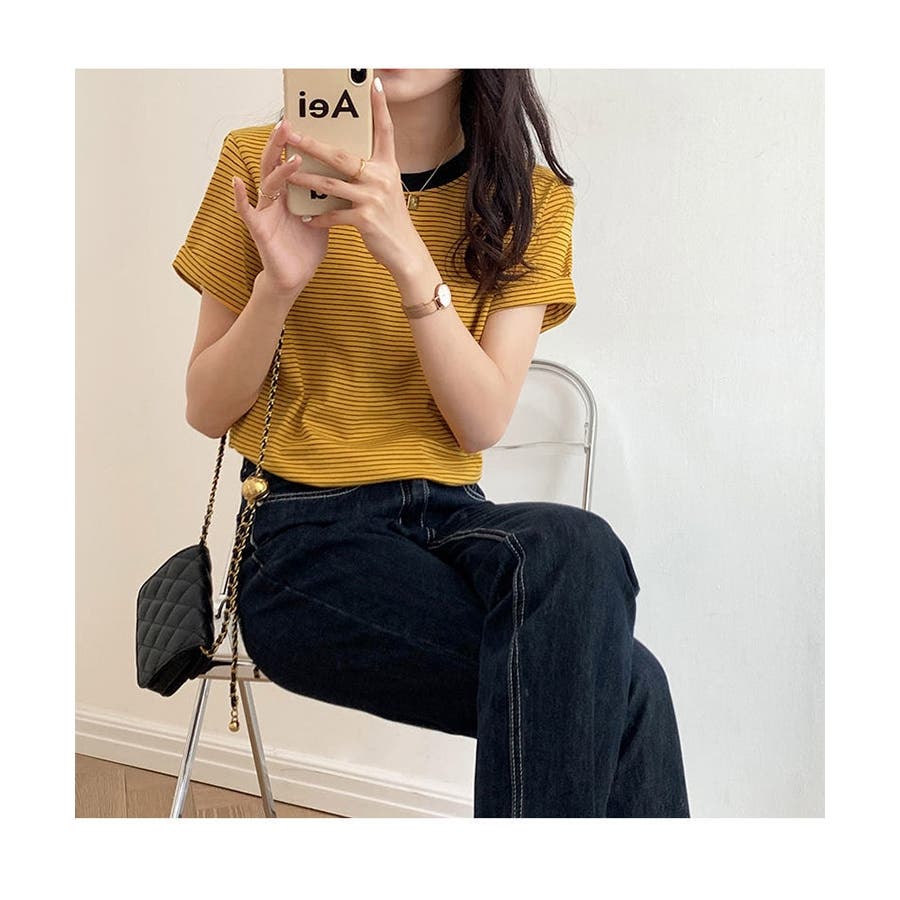 半袖 Tシャツ レディース クルーネック 細ボーダー