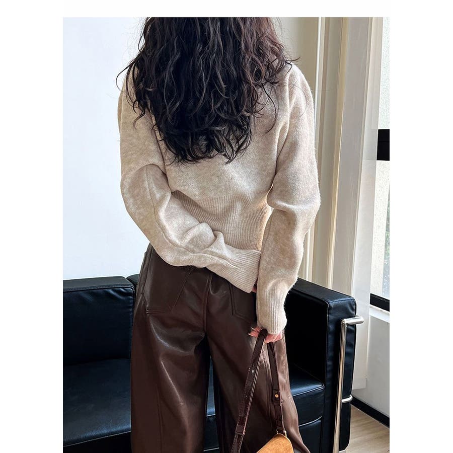 ニット セーター レディース ハーフジップ 長袖 ゆったり 秋冬 韓国