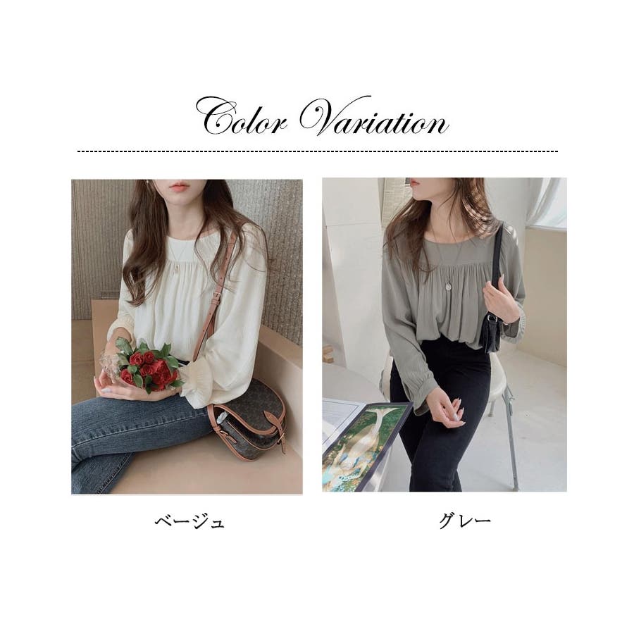 ゆったりとしたシルエットが魅力の長袖ブラウス。